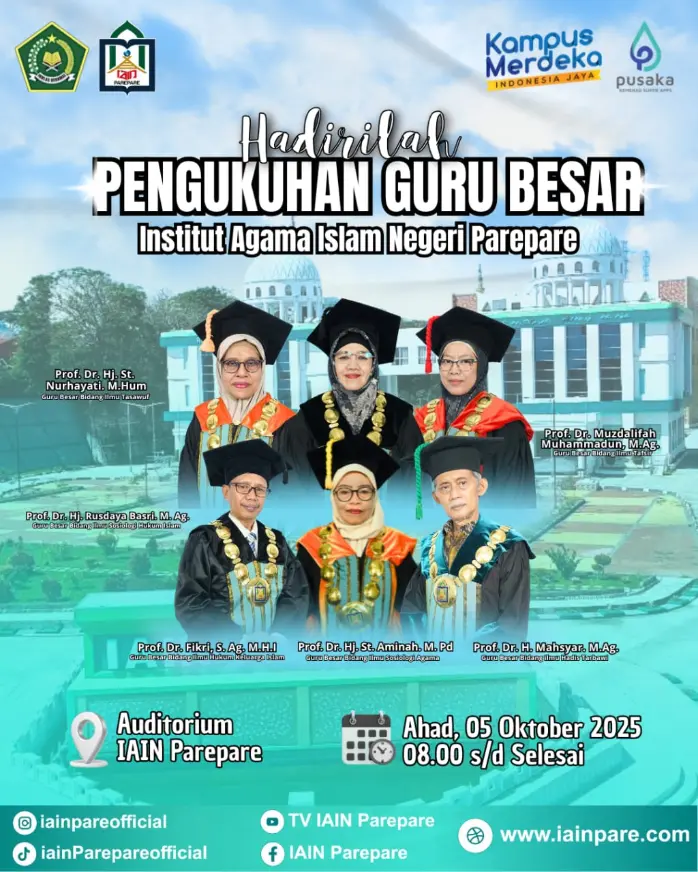Secara keseluruhan, IAIN Parepare siap menyambut kedatangan Prof. H. Amien Suyitno, untuk memimpin upacara pengukuhan bersejarah ini pada 5 Oktober 2025. Momen ini bukan hanya seremonial, tetapi titik tolak strategis untuk mendorong IAIN Parepare meningkatkan kualitas Tridharma Perguruan Tinggi, terutama dalam riset dan pengabdian masyarakat. (Irm/mif)