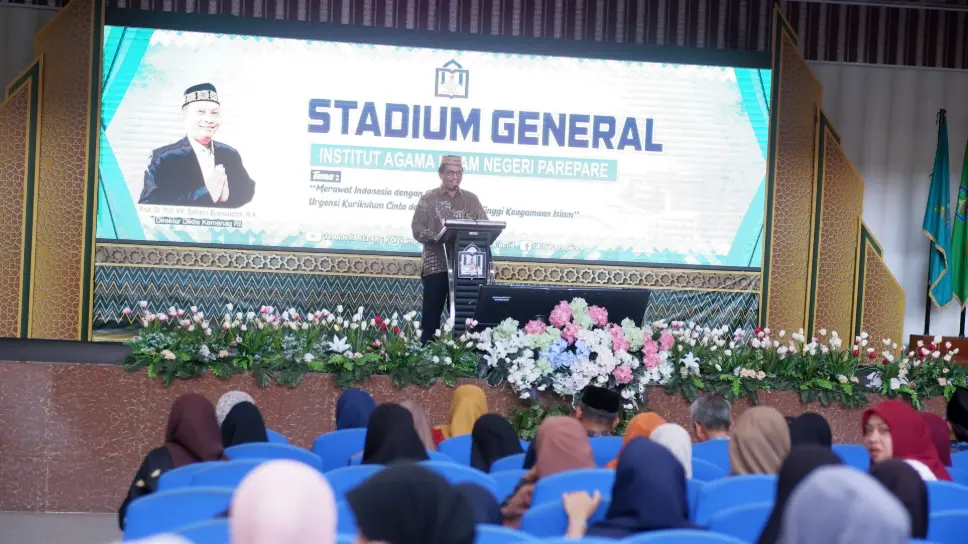 Humas IAIN Parepare- Institut Agama Islam Negeri (IAIN) Parepare menggelar Stadium General dengan tema “Merawat Indonesia dengan Cinta: Urgensi Kurikulum Cinta dalam Pendidikan Tinggi Keagamaan Islam” di Auditorium IAIN Parepare, Jumat (03/10/2025). Kuliah umum ini dibawakan langsung oleh Direktur Pendidikan Tinggi Keagamaan Islam Kementerian Agama RI, Prof.  Sahiron Syamsuddin.