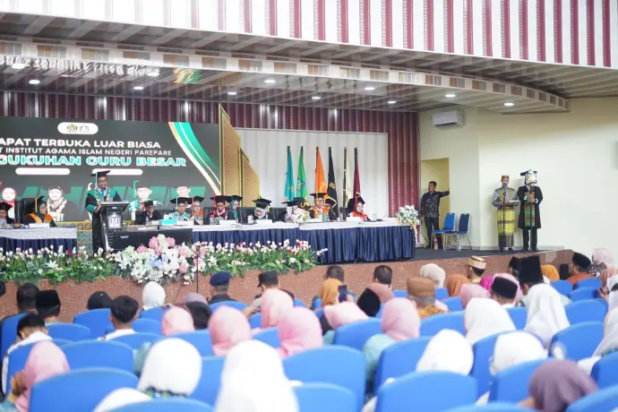 Pesan inspiratif ini disampaikan Prof. Suyitno dalam acara Pengukuhan Enam Guru Besar Institut Agama Islam Negeri (IAIN) yang berlangsung di Auditorium IAIN Parepare, Ahad (5/10/2025).