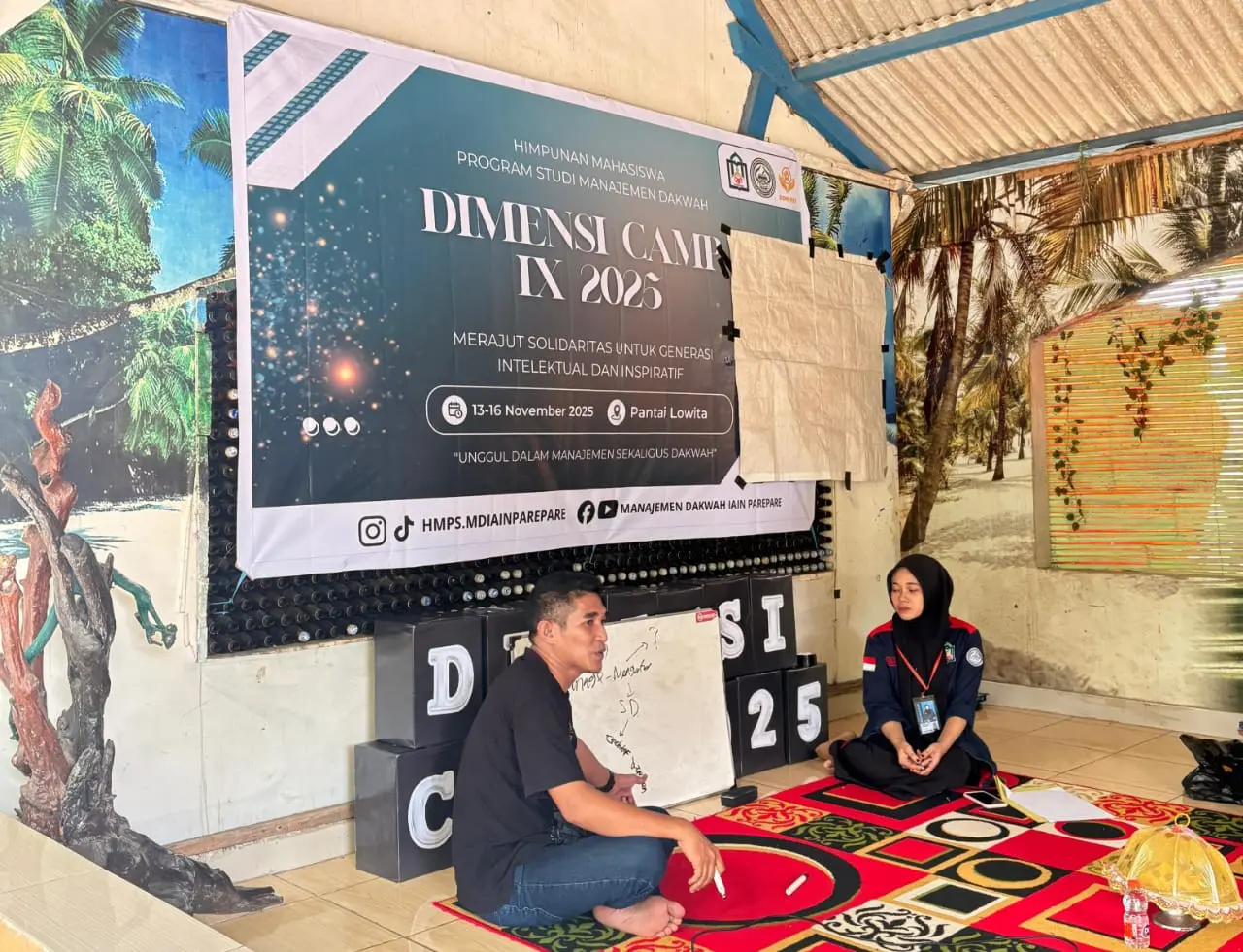 Humas IAIN Parepare--Program studi Manajemen Dakwah Institut Agama Islam Negeri Parepare kembali melaksanakan Kuliah Lapangan bertajuk DIMENSI CAMP IX (Diskusi Ilmiah dan Merajut Silaturahmi) pada hari Kamis-ahad, 13-16/11/25) di Villa Mutiara Lowita. Kegiatan tahun ini mengangkat tema "Merajut Solidaritas untuk Generasi Intelektual dan Inspiratif" dan melibatkan dosen serta alumni sebagai pemateri.