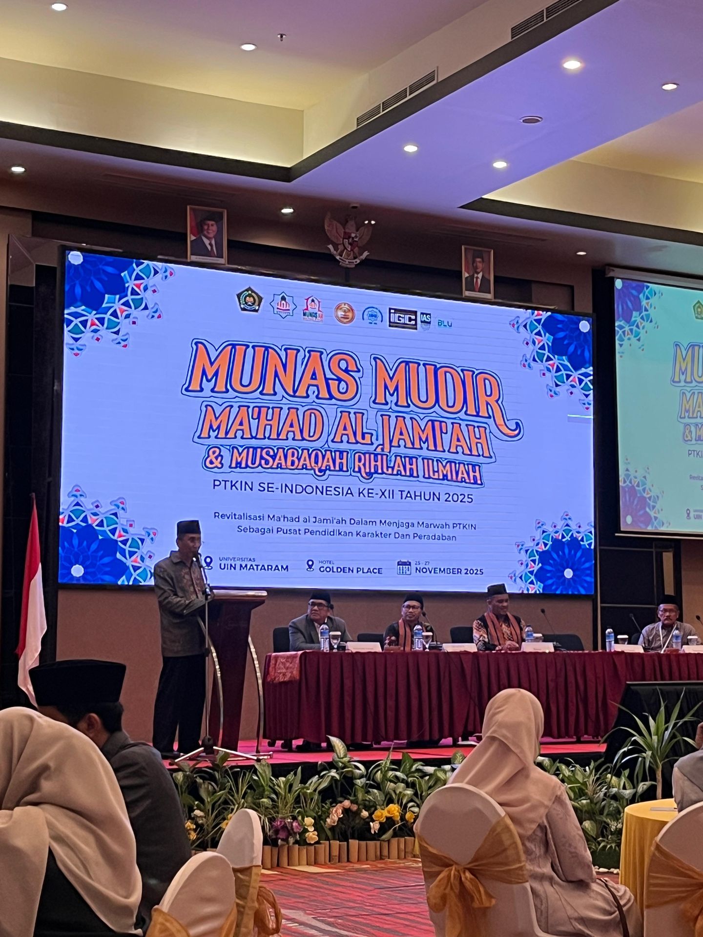 Musyawarah Nasional Mudir Ma’had Al-Jami’ah dan Musabaqah Rihlah Ilmiah PTKIN se-Indonesia dibuka secara resmi di Hotel Golden Palace, Mataram, Selasa (25/11/2025). Tahun ini, kegiatan mengusung tema “Revitalisasi Ma’had Al-Jami’ah dalam Menjaga Marwah PTKIN sebagai Pusat Pendidikan Karakter dan Peradaban,” yang menegaskan pentingnya Ma’had sebagai pusat pembentukan karakter mahasiswa.